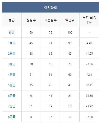 <2021년 4월 고3 모의고사/학력평가 정치와법 등급컷>