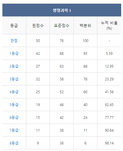 <2021년 4월 고3 모의고사/학력평가 생명과학1 등급컷>