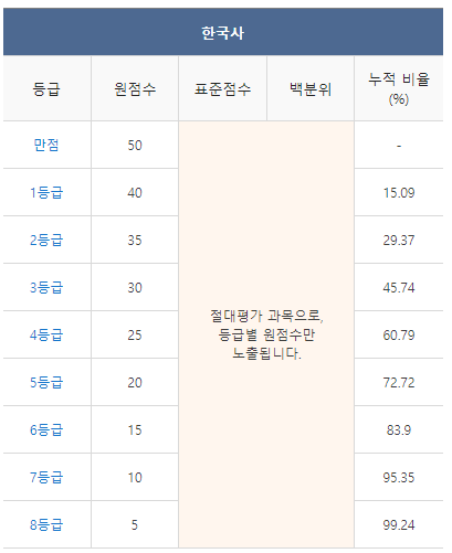 <2021년 4월 고3 모의고사/학력평가 한국사 등급컷>