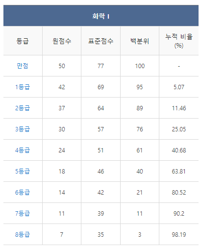 <2021년 4월 고3 모의고사/학력평가 화학1 등급컷>