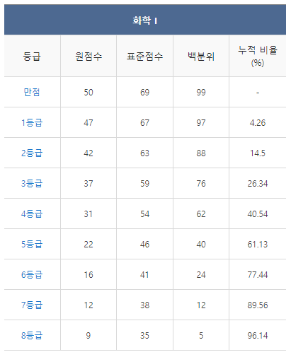 [2021년 6월 고3 모의고사/모의평가 화학1 등급컷]