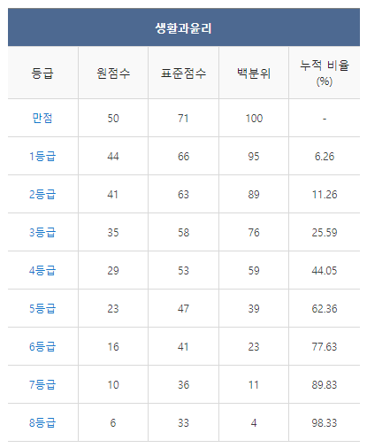 [2021년 6월 고3 모의고사/모의평가 생활과윤리 등급컷]