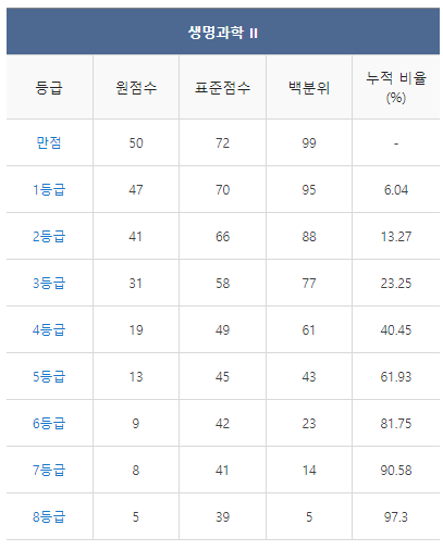 [2021년 6월 고3 모의고사/모의평가 생명과학2 등급컷]