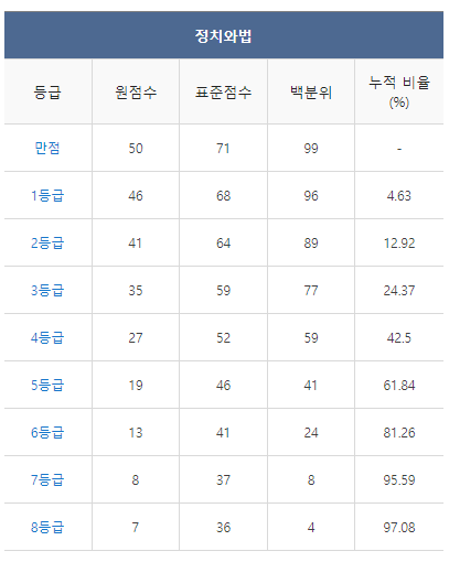 [2021년 6월 고3 모의고사/모의평가 정치와법 등급컷]