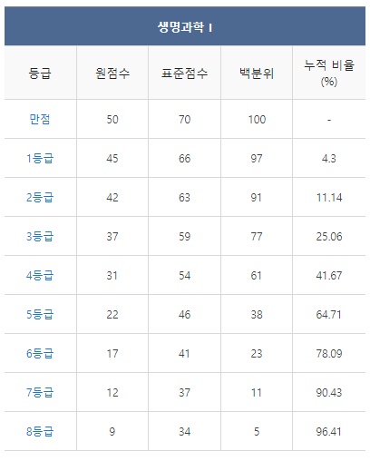 [2021년 6월 고3 모의고사/모의평가 생명과학1 등급컷]