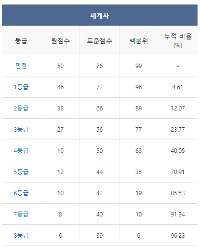 [2021년 6월 고3 모의고사/모의평가 세계사 등급컷]