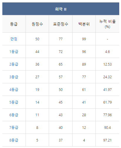 [2021년 6월 고3 모의고사/모의평가 화학2 등급컷]