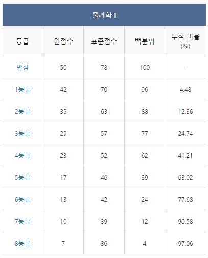 [2021년 6월 고3 모의고사/모의평가 물리학1 등급컷]