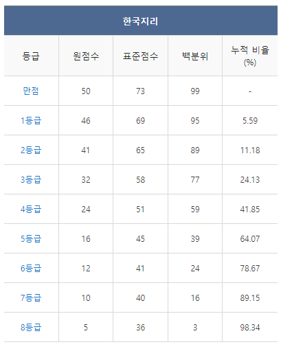 [2021년 6월 고3 모의고사/모의평가 한국지리 등급컷]