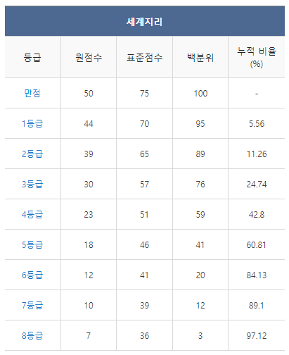 [2021년 6월 고3 모의고사/모의평가 세계지리 등급컷]