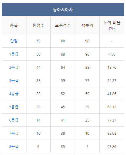 [2021년 6월 고3 모의고사/모의평가 동아시아사 등급컷]