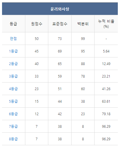 [2021년 6월 고3 모의고사/모의평가 윤리와사상 등급컷]