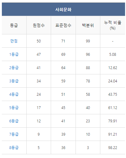 [2021년 6월 고3 모의고사/모의평가 사회문화 등급컷]