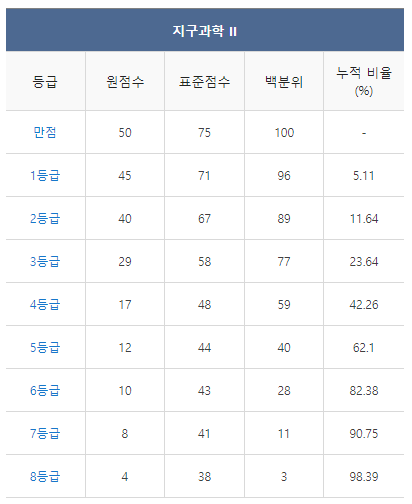 [2021년 6월 고3 모의고사/모의평가 지구과학1 등급컷]