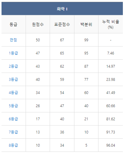 [2021년 9월 고3 모의고사/모의평가 화학1 등급컷]