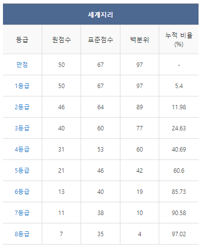 [2021년 9월 고3 모의고사/모의평가 세계지리 등급컷]