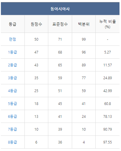 [2021년 9월 고3 모의고사/모의평가 동아시아사 등급컷]