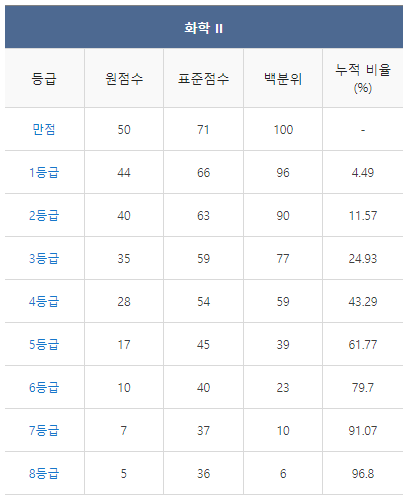 [2021년 9월 고3 모의고사/모의평가 화학2 등급컷]