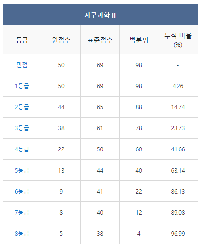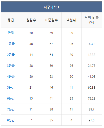 [2021년 9월 고3 모의고사/모의평가 지구과학1 등급컷]