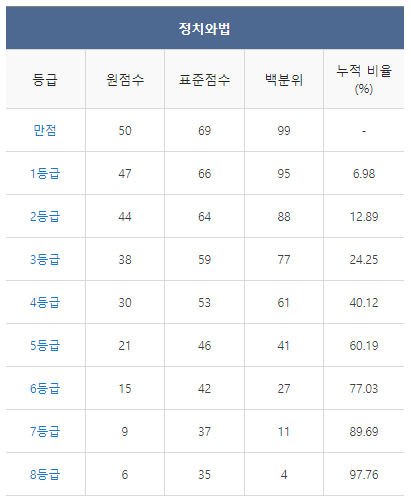 [2021년 9월 고3 모의고사/모의평가 정치와법 등급컷]