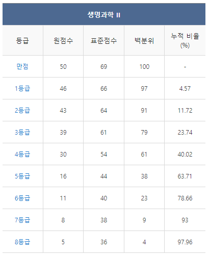 [2021년 9월 고3 모의고사/모의평가 생명과학2 등급컷]