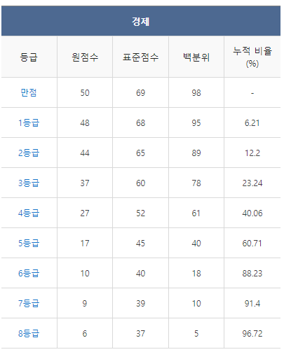 [2021년 9월 고3 모의고사/모의평가 경제 등급컷]