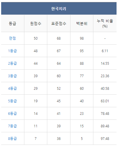 [2021년 9월 고3 모의고사/모의평가 한국지리 등급컷]