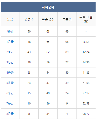 [2021년 9월 고3 모의고사/모의평가 사회문화 등급컷]
