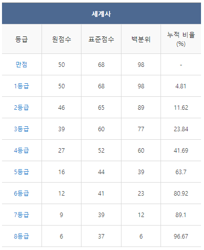 [2021년 9월 고3 모의고사/모의평가 세계사 등급컷]