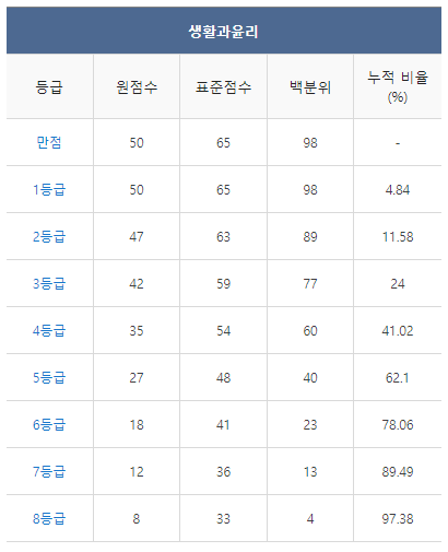 [2021년 9월 고3 모의고사/모의평가 생활과윤리 등급컷]