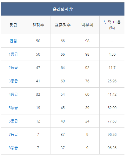 [2021년 9월 고3 모의고사/모의평가 윤리와사상 등급컷]