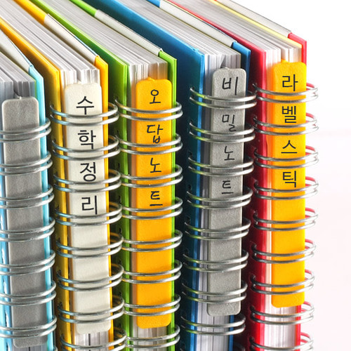 스프링노트를 책꽂이에 꽂아 넣었을 때 어떤 노트인지 분간할 수 있게 도와주는 스틱으로 간단하게 스틱에 적어넣고