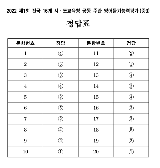 | 2023년 제1회 중3 영어듣기평가 기출문제,문제지,정답,듣기파일 (0) | 2023.05.16 |