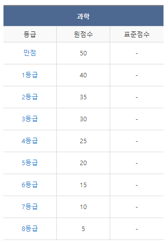 <2022년 3월 고1 모의고사/학력평가 과학 등급컷>