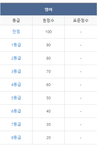 <2022년 3월 고1 모의고사/학력평가 영어 등급컷>