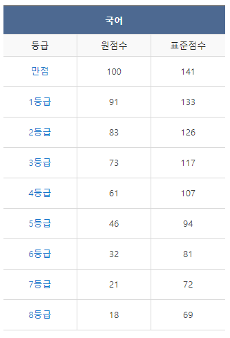 <2022년 6월 고2 모의고사/학력평가 국어 등급컷>