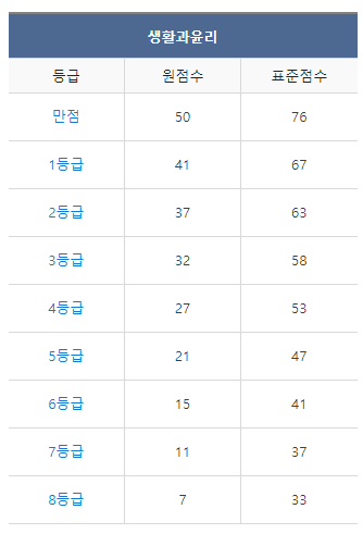 <2022년 3월 고3 모의고사/학력평가 생활과윤리 등급컷>