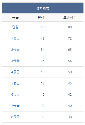 <2022년 3월 고3 모의고사/학력평가 정치와법 등급컷>