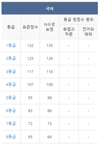 <2022년 3월 고3 모의고사/학력평가 국어 등급컷>