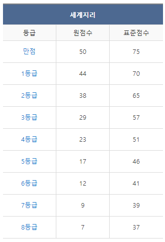 <2022년 3월 고3 모의고사/학력평가 세계지리 등급컷>