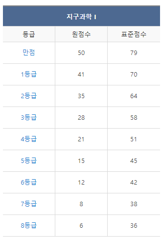 [2022년 7월 고3 모의고사/학력평가 지구과학1 등급컷]