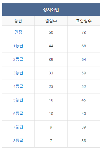 [2022년 7월 고3 모의고사/학력평가 정치와법 등급컷]