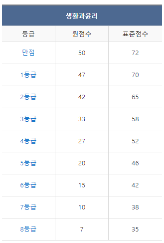 [2022년 7월 고3 모의고사/학력평가 생활과윤리 등급컷]