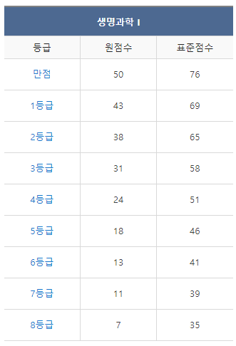 [2022년 7월 고3 모의고사/학력평가 생명과학1 등급컷]
