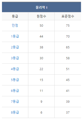 [2022년 7월 고3 모의고사/학력평가 물리1 등급컷]