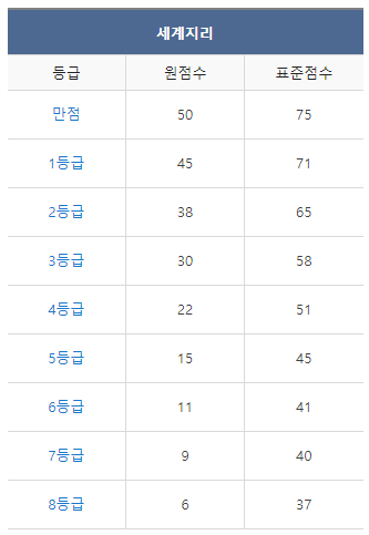 [2022년 7월 고3 모의고사/학력평가 세계지리 등급컷]