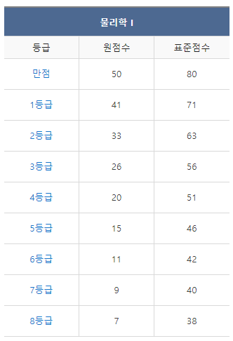 <2022년 9월 고2 모의고사/학력평가 물리1 등급컷>