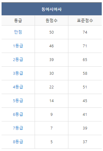 <2022년 9월 고2 모의고사/학력평가 동아시아사 등급컷>