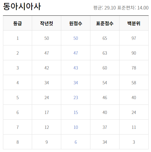 <2022년 대학수학능력시험,수능 동아시아사 등급컷>
