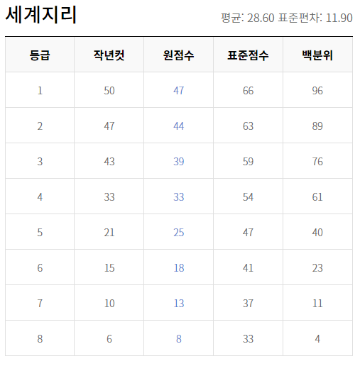 <2022년 대학수학능력시험,수능 세계지리 등급컷>